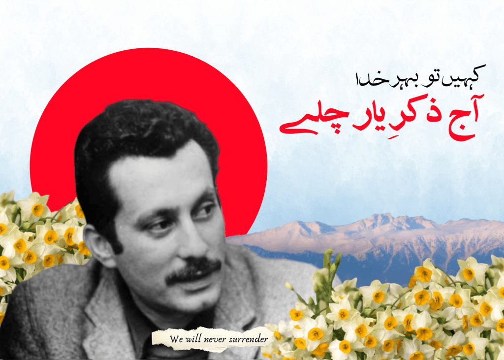 Protest placard depicting Kashmiri Yimberzal and Ghassan Kanafani.
