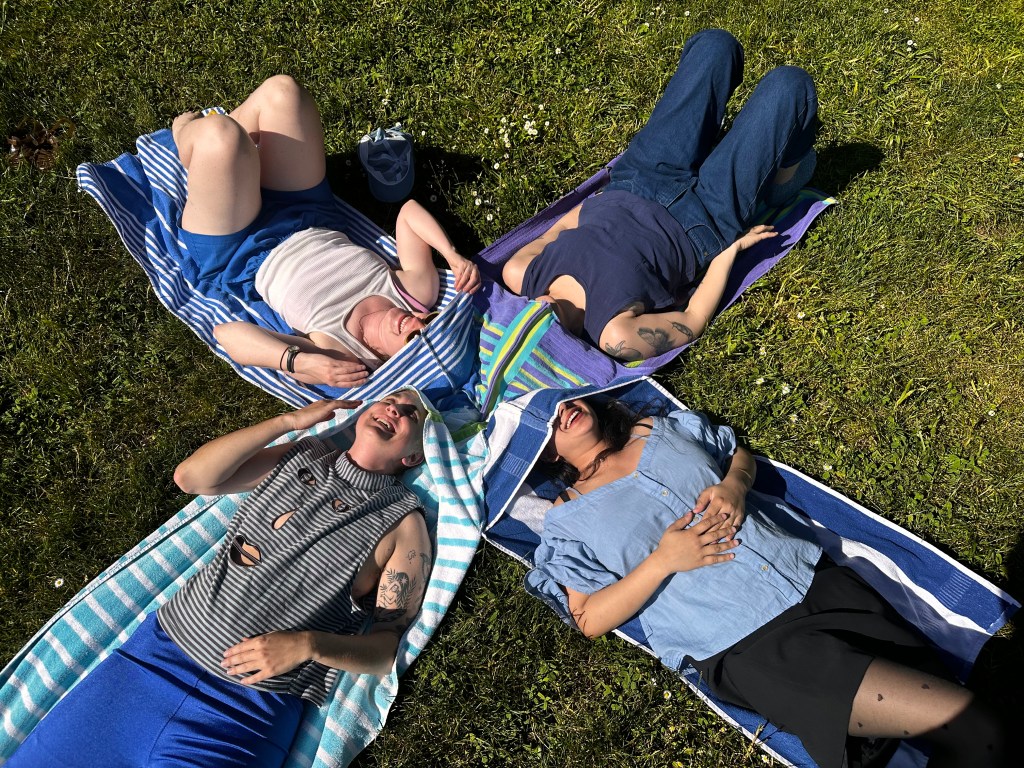Taking our Time is an artist collective dedicated to manifesting rest and pleasure in our daily lives. It’s made up of artists Clara Harlow, Lou Blumberg, Nina Vichayapai, and myself. The collective aims to make participatory sculptures, zines, and events that encourage us to slow down and look up.